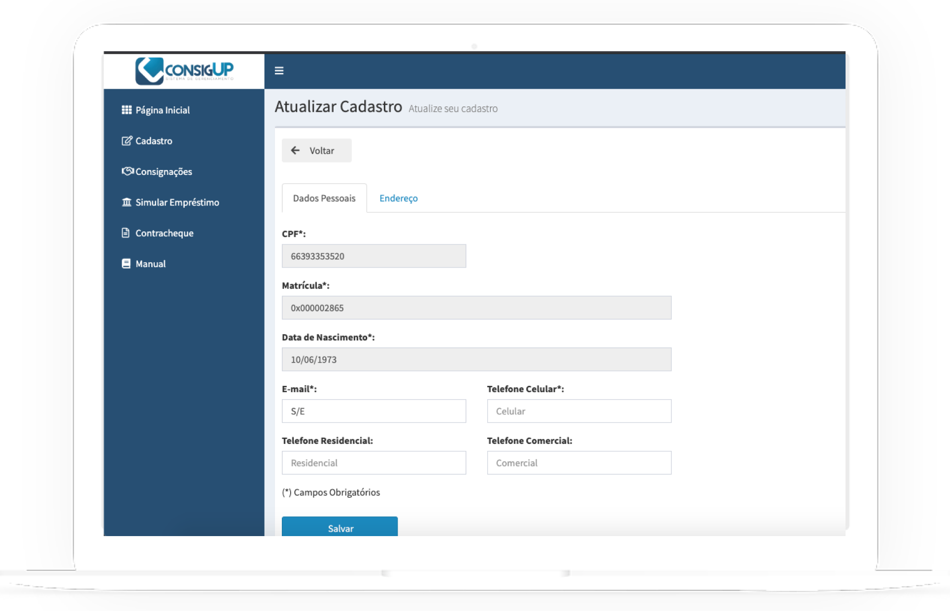 consigUP sistema desenvolvido inteiramente em plataforma WEB, ágil, interativo e independente,